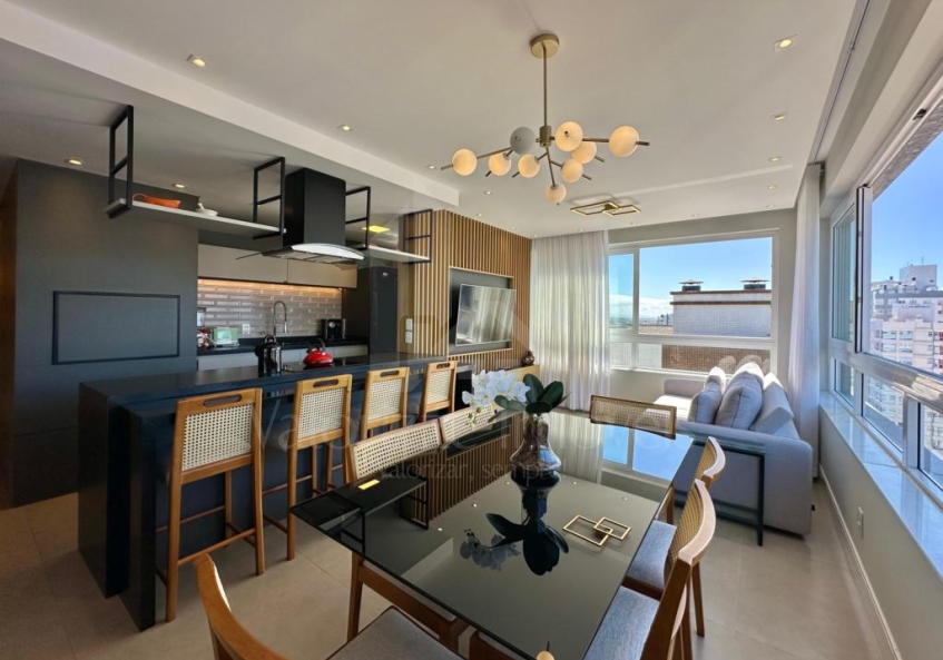 Apartamento finamente mobiliado e decorado, constendo 3 dormitórios, sendo uma suíte, sala de estar e jantar, cozinha e área de serviço, churrasqueira, no último pavimento, com duas vagas de garagem, split nos ambientes, gás central, hidrômetro individual. Prédio com padrão AAA, salão de festas, pscina, hall de entrada decorado e imponente, próximo aos melhores recursos da cidade, sendo restaurantes, mercados, praça e muito mais.