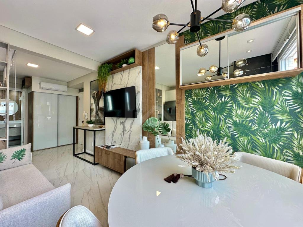 LINDO LOFT, finamente mobiliado e decorado, banheiro social, sacada integrada, sala 3 ambientes, cozinha, churrasqueira, área de serviço, split instalados, box para carro, piso em porcelanato polido, iluminação completa, rebaixado em gesso, hidrômetros individuais, água quente, gás central. Prédio 100% revestido em plaquetas, zeladora permanente, elevador, hall mobiliado e decorado, portão e porteiro eletrônico, ifraestrutura com área verde e espaço gourmet, junto a praça Flávio Boianovisk.