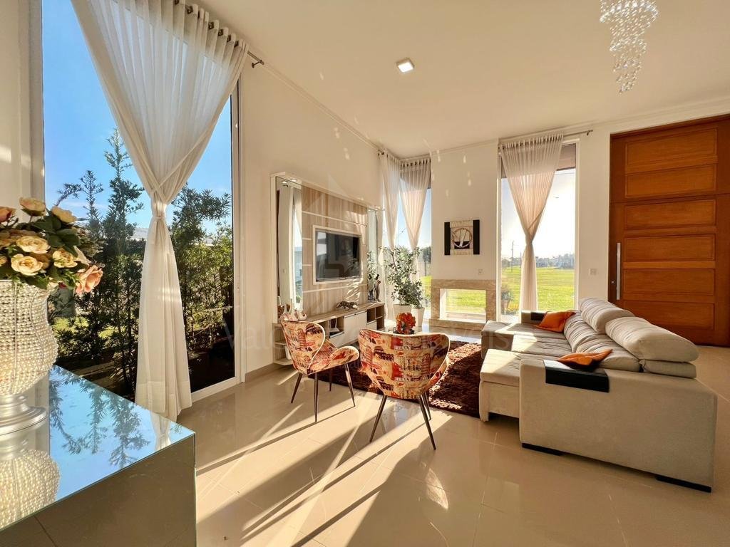 Residência em condomínio fechado, composta por 03 suítes, lavabo, sala de jantar e estar com lareira e pé direito duplo, cozinha no estilo americano com churrasqueira, completamente mobiliada e decorada. Condomínio fechado proporcionando todo o conforto e segurança que sua família merece...