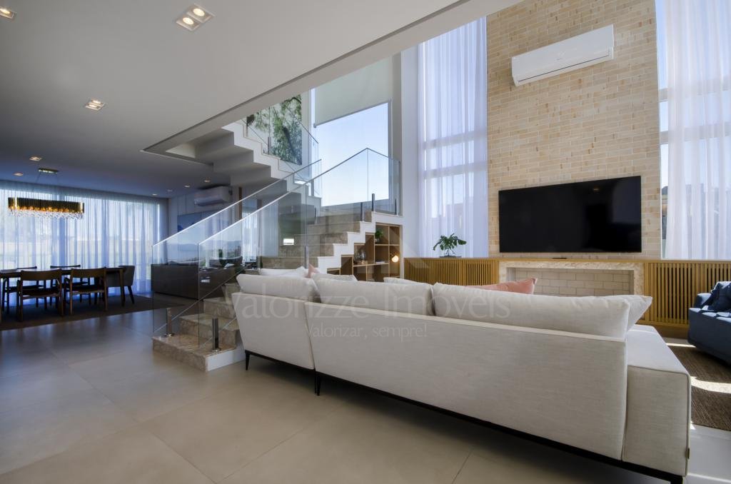 Excelente opção de residência composta por 04 suítes, lavabo, cozinha americana com churrasqueira, amplo living em 04 ambientes, sala de estar e jantar, pé direito duplo, lareira, mobiliada e decorada, abrigo para carros! POSSIBILIDADE DE PRAZO DIRETO COM A CONSTRUTORA...