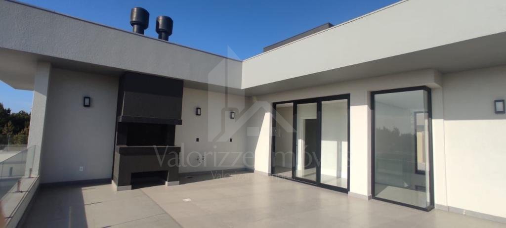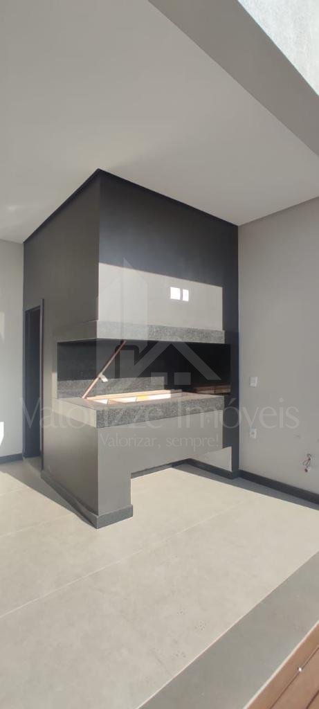 Sobrado de alto padrão construtivo, com pé direito duplo, constituído por cinco suítes, amplo living integrado de sala de estar e jantar, lareira com acabamento em mármore. Esquadrias em PVC preto, piso porcelanato, espera para split, agua quente e gás central. Pátio com paisagismo e piscina.