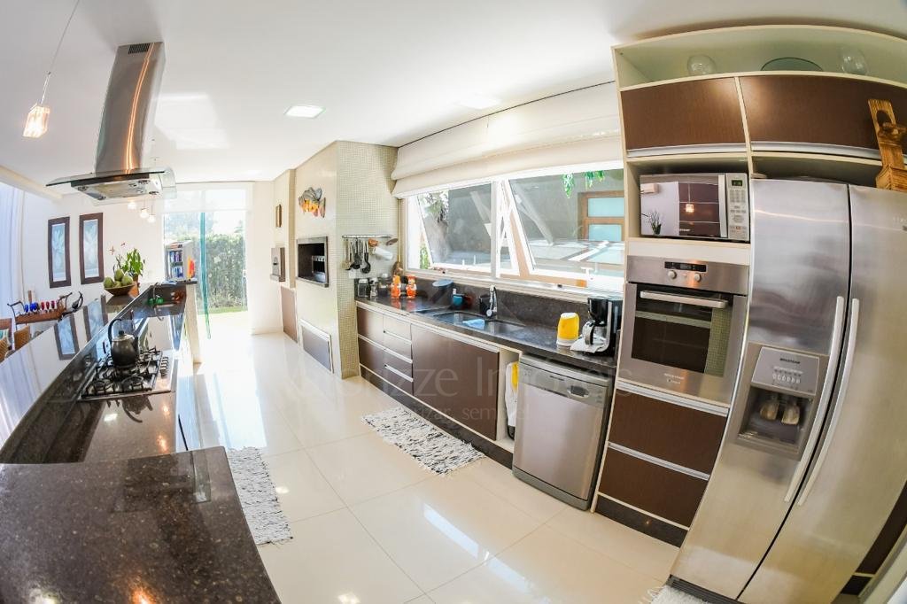 Requintado imóvel de 349m², totalmente mobiliado e decorado, composto por cinco suítes, lavabo, sala de estar com pé direito duplo, lareira, cozinha estilo americana com espaço gourmet integrado, área de serviço, abrigo para 2 carros no corpo da casa. Pátio com paisagismo pergolado e piscina.