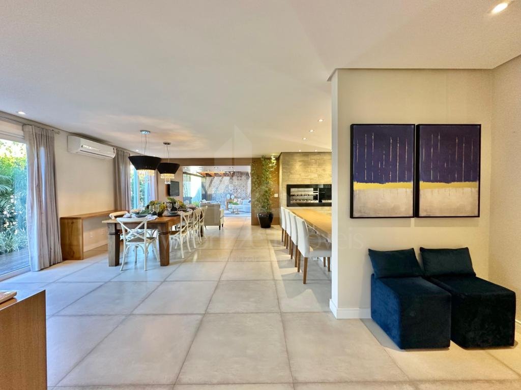 Casa em Condominio, totalmente mobiliada e decorada, 4 dormitórios, todos com ar condicionado, sendo 1 suíte master e 3 suítes individuais. Living com 5 ambientes climatizados, escritório completo, espaço gourmet com churrasqueira elétrica, vaga de garagem para 2 carros, sendo cobertos.