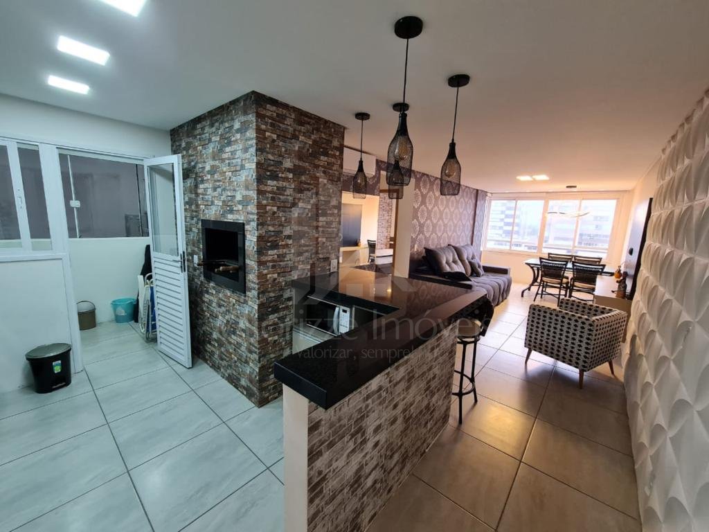 Apartamento de frente com dois dormitórios, sendo uma suíte, banho social, sala de estar e jantar com sacada integrada, cozinha estilo americana, área de serviço separada e box de estacionamento. Tudo isso em uma ótima localização, a duas quadras do centro e a poucos metros do mar.
