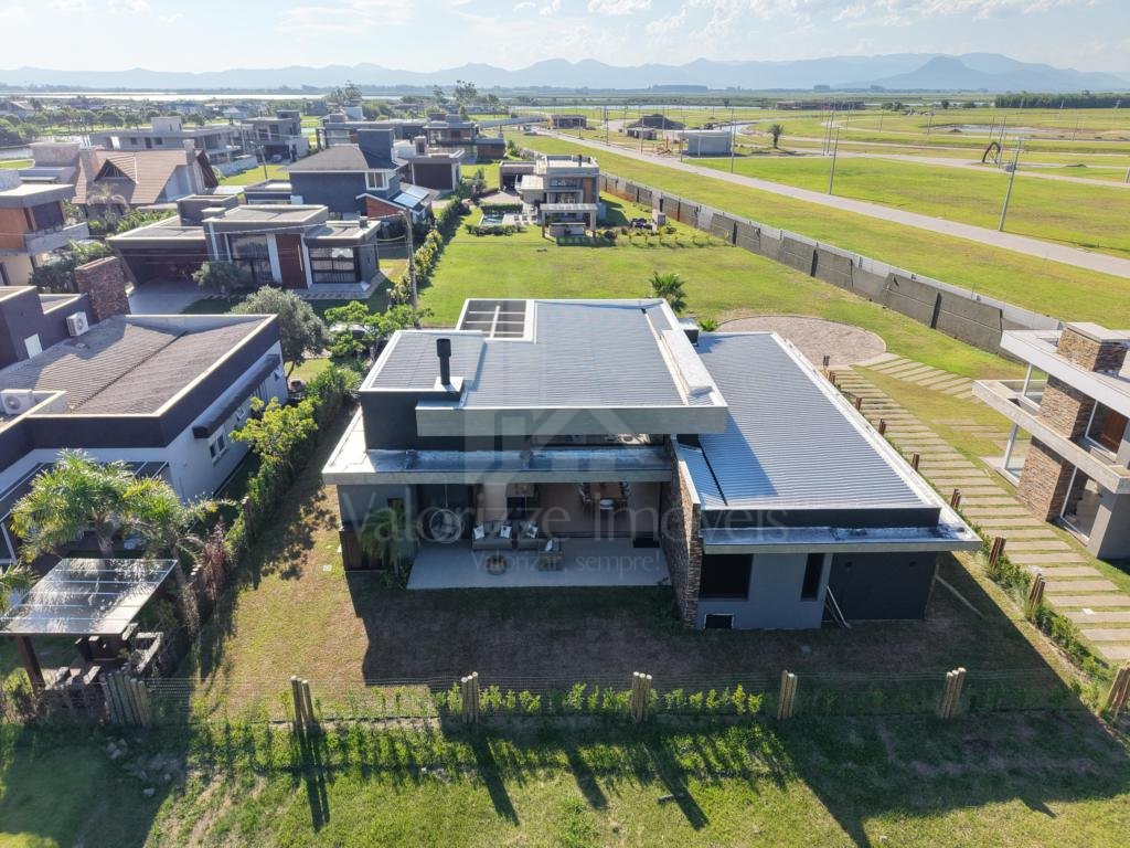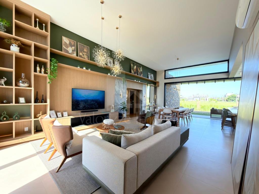 OPORTUNIDADE EM CONDOMÍNIO COM MARINA PARTICULAR - Casa térrea composta por 04 suítes individuais, lavabo, estar e jantar integrados com pé direito elevado, lareira, cozinha americana com bancada e churrasqueira, área de serviços, pátio frente e fundos, abrigo para 02 carros, paisagismo completo, arquitetura comtemporânea com materiais nobres e modernos. Localizada em condomínio fechado com marina particular, infraestrutura completa e acesso facilitado pela estrada do mar. AGENDE SUA VISITA!