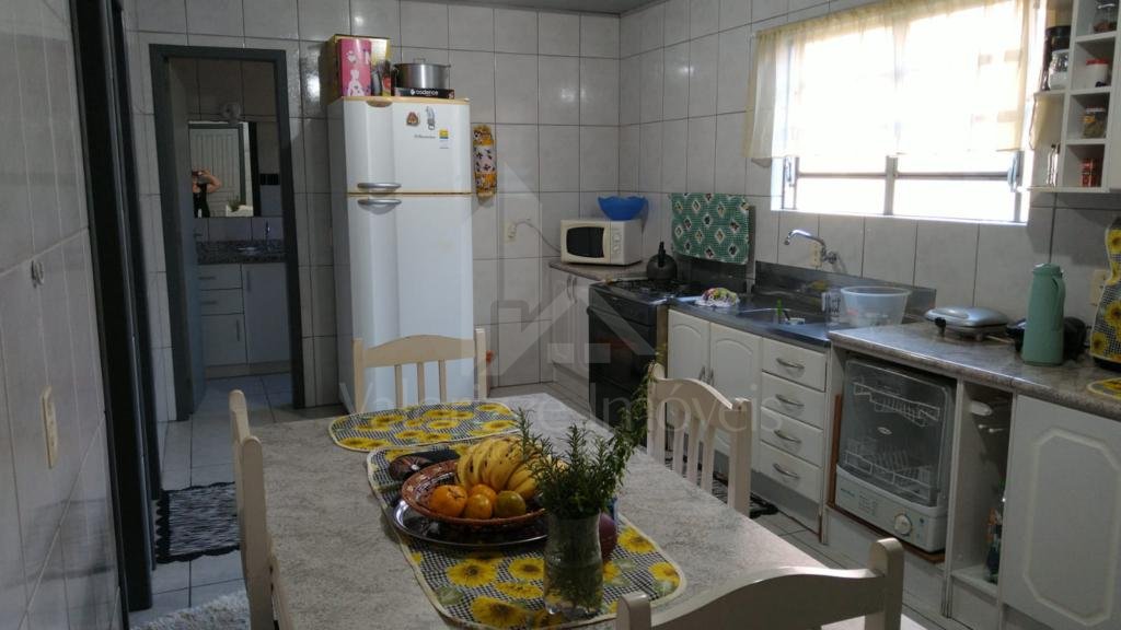 Casa mista (madeira e alvenaria) composta de três dormitórios, dois banheiros sociais, sala de estar e jantar, cozinha independente, garagem fechada. Amplo pátio cercado, frente leste, terreno 15x30.