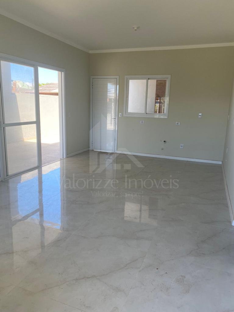 Casa nova nunca habitada de três dormitórios, sendo uma suíte, banho social, sala de estar e jantar com cozinha integrada, área para churrasco, garagem para dois carros e espaçoso pátio nos fundos com opção para coloção de piscina.