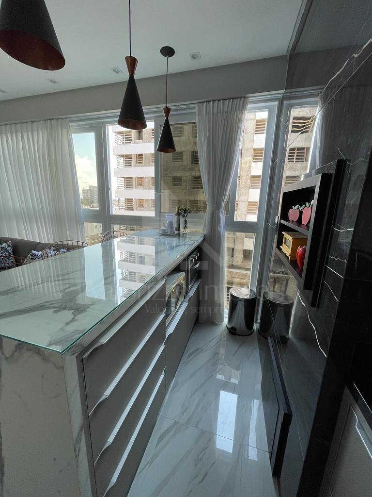 Ótimo apartamento mobiliado e decorado, composto de dois dormitórios sendo uma suíte, banho social, lavabo, sala de estar e jantar integradas com cozinha estilo americana, área de serviço separada e box de estacionamento.