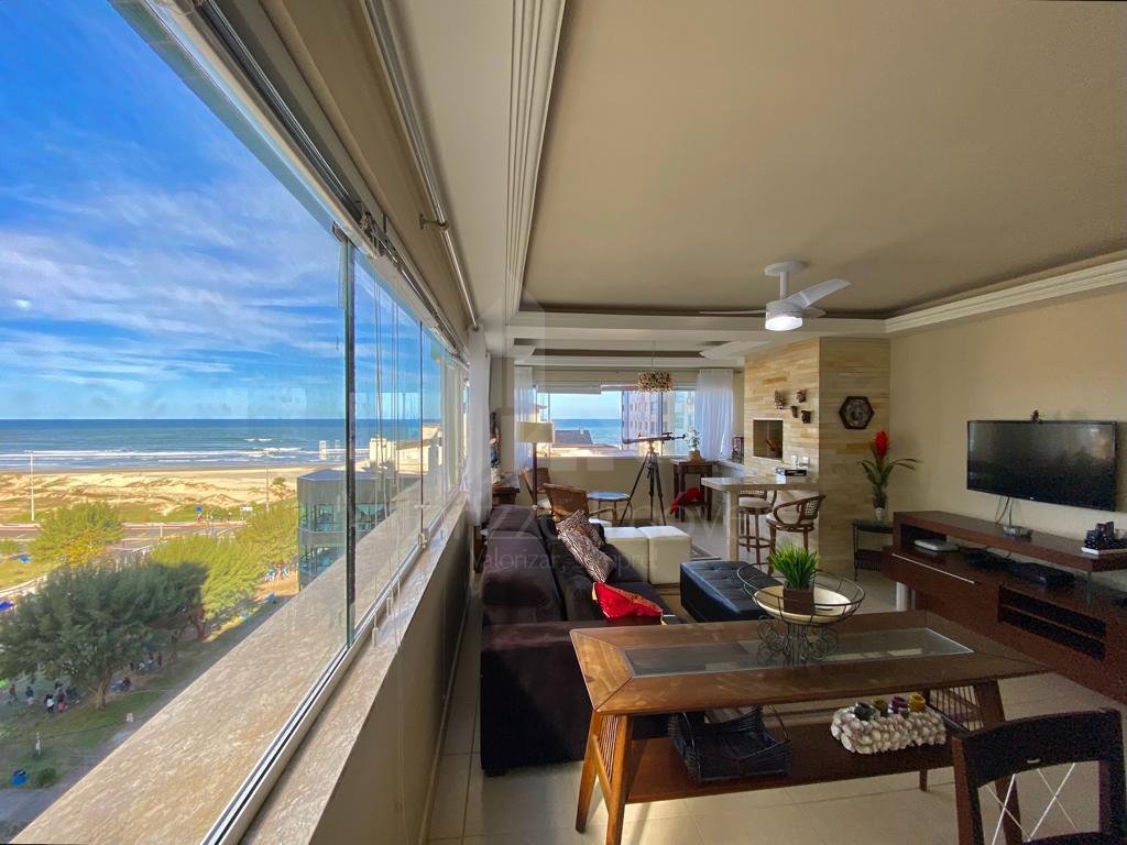 MELHOR APARTAMENTO DA REGIÃO, composto por 03 dormitórios (sendo 01 suíte), banho social, lavabo, cozinha americana, área de serviço, amplo living em 04 ambientes, sacada de frente completamente integrada e com churrasqueira, VISTA ETERNA PARA O MAR de todos os cômodos do imóvel, muito bem mobiliado, 02 vagas de garagem individuais. Localização impecável em frente a praça, apenas 01 quadra da beira mar, na zona mais valorizada de Capão da Canoa. Edifício revestido em plaquetas, com água quente e gás central, portão e porteiro eletrônico, zeladoria anual, Infraestrutura completa com piscina, salão de festas e academia. Marque sua visita agora mesmo com um de nossos corretores de plantão...