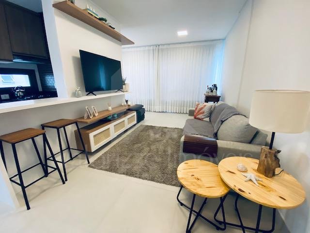 Lindo apartamento, mobiliado e decorado de três dormitórios, sendo uma suíte, banho social, lavabo, sala de estar com living dois ambientes, cozinha estilo americana integrada, sacada de frente com churrasqueira, duas vagas de garagem e dois depositos.