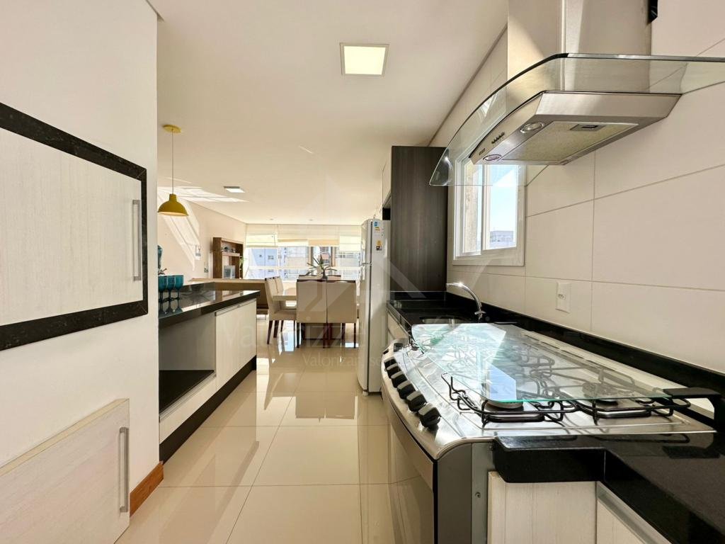 Amplo apartamento de três dormitórios, sendo uma suite, banho social, sala de estar e jantar com sacada de frente e churrasqueira, cozinha estilo americana, área de serviço integrada, dois box de estacionamento e mais um depósito.