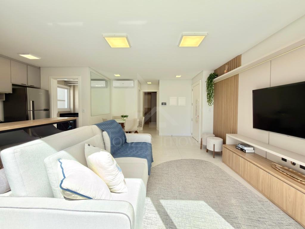 NOVIDADE NO BAIRRO NAVEGANTES - Prédio frente praça, edifício novo e apartamento nunca habitado, composto por 02 dormitórios (sendo 01 suíte), banho social, cozinha americana com bancada e churrasqueira, área de serviço, sala de estar e jantar, terraço amplo e de frente, finamente mobiliado e decorado, box de garagem.