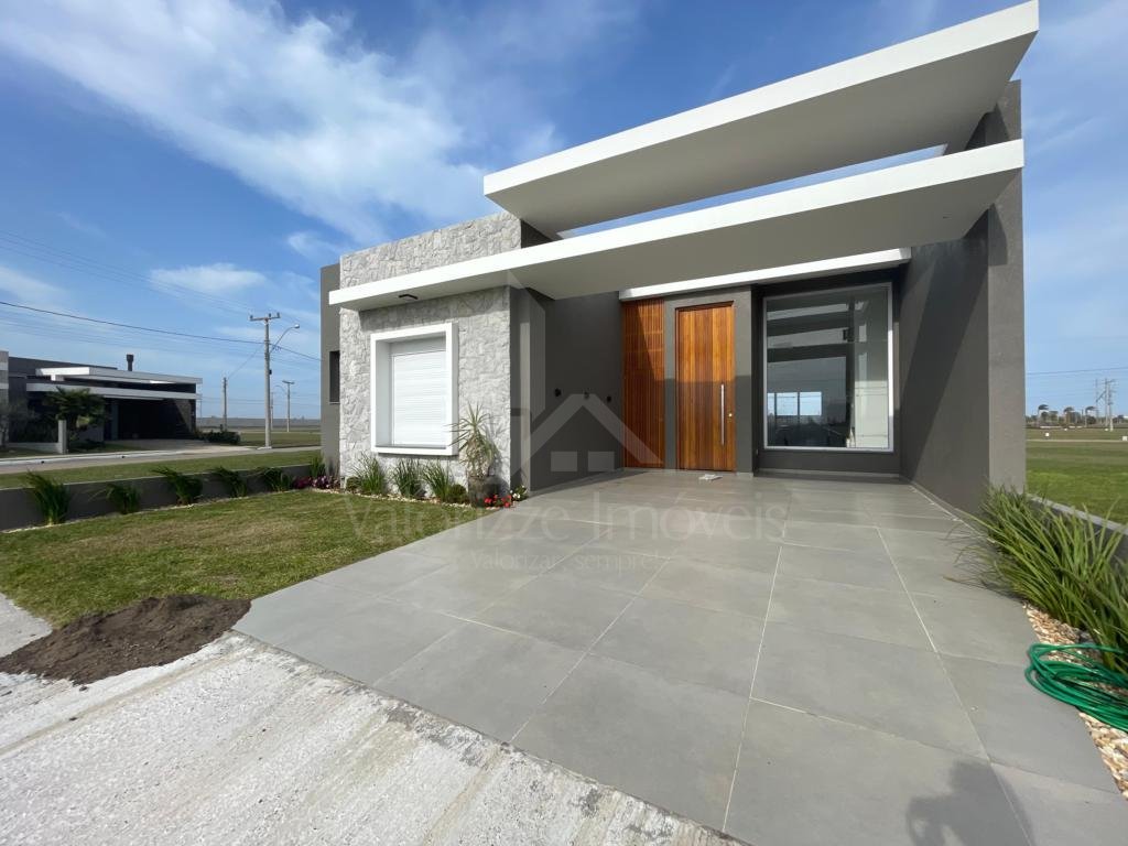 Residência térrea, composta por 03 suítes independentes, lavabo, living amplo e integrado, estar com lareira e pé direito elevado, cozinha com churrasqueira, área de serviços, pátio frente e fundos, abrigo para 02 carros, arquitetura moderna, materiais nobres, ótima localização dentro do condomínio, em rua calma e tranquila. Localizada em condomínio aberto, com infraestrutura de lazer, lagos e hospital de pronto atendimento. CONSULTE condições de investimento...