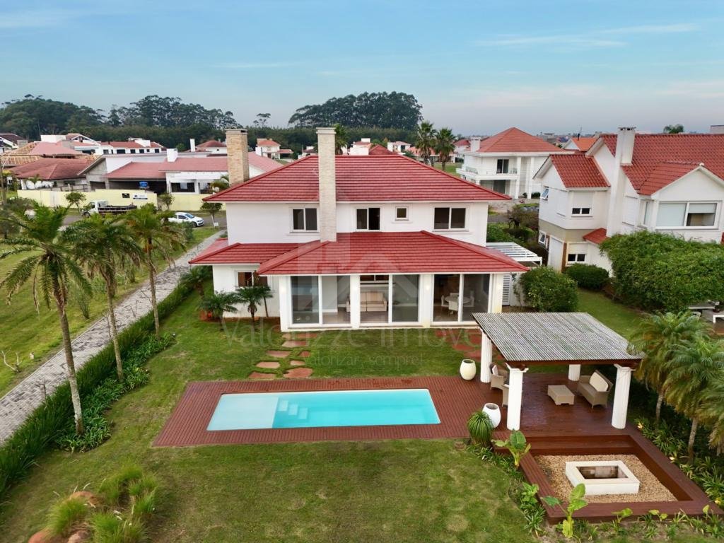 MAGNÍFICO SOBRADO A VENDA, composto por 04 suítes, sala de estar ampla, sala de jantar integrada, cozinha americana, sala íntima, sala de jogos, escritório, finamente mobiliado e decorado, pisicna, pergolado, amplo pátio, à beira lago, abrigo para 02 carros. Localizada em condomínio fechado único no litoral gaucho, contando com uma belíssima infraestrutura e campo de golf. Venha conhecer...
