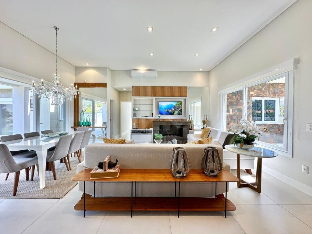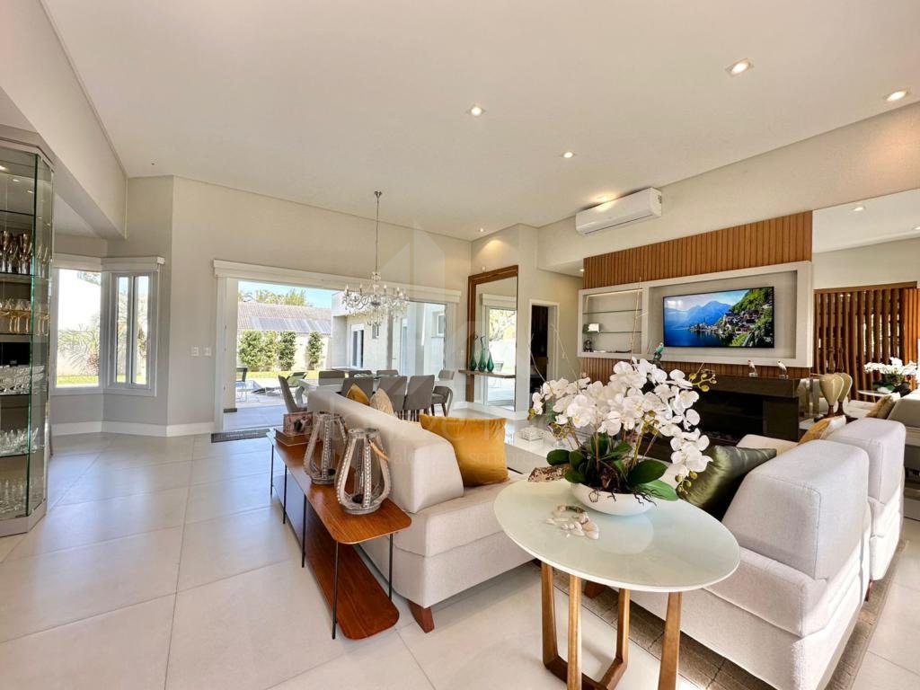 Linda casa com 260m², alto padrão, mobiliada e decorada, 04 dormitórios sendo todos suítes, lavabo, banho social, living estar e jantar, cozinha americana, espaço gourmet, área de serviço independente, piscina em concreto, pátio fechado, segurança com alarme e garagem para 02 carros.