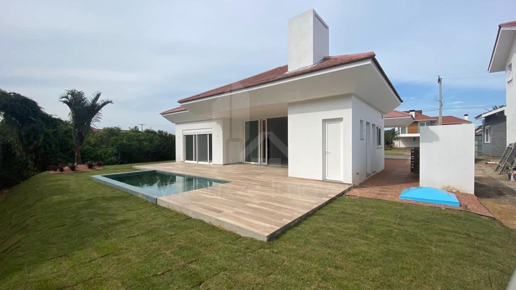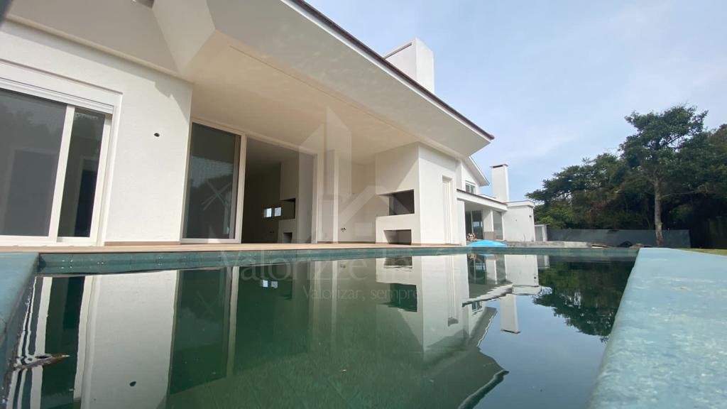 Residência térrea em condomínio fechado, composta por 04 suítes, living amplo e integrado, pé direito elevado, cozinha estilo americano com churrasqueira, sala de estar com lareira e revestida em pedras naturais, espaço gourmet externo junto a piscina, depósto, abrigo para 02 carros. Nova e nunca habitada, padrão construtivo elevado, materiais nobres, estilo arquitetônico clássico, localizada em condomínio fechado de alto nível, com infraestrututa completa, diversas área de lazer, além de ser o único no litoral norte com campos de golfe. CONSULTE condições de investimento...