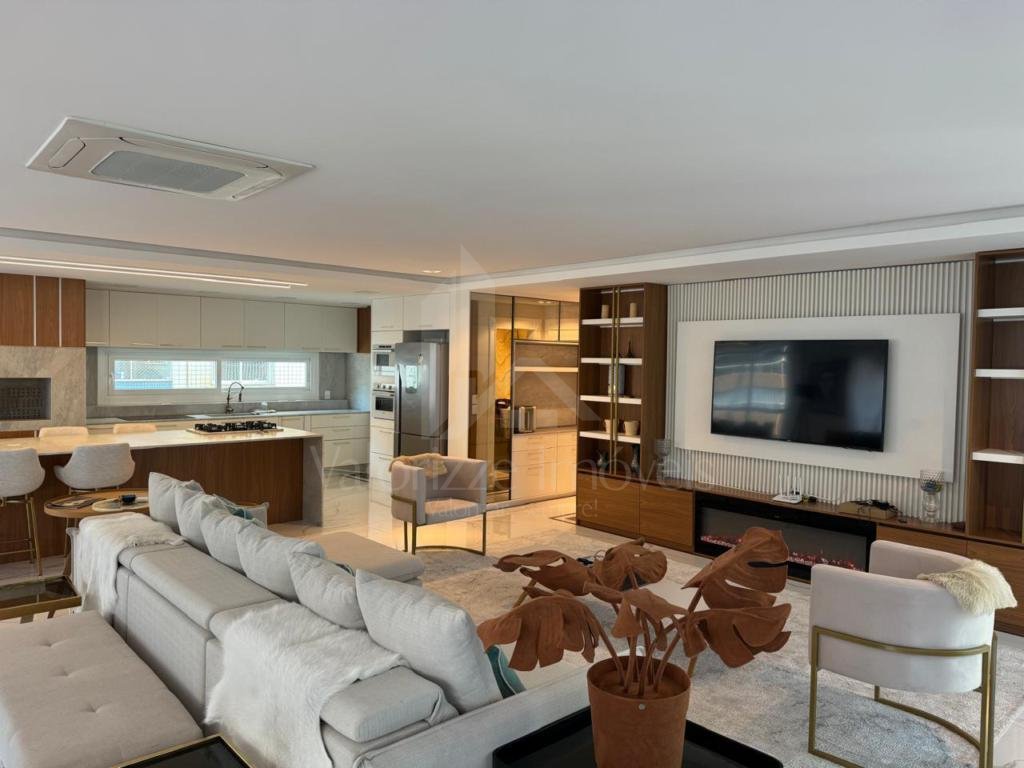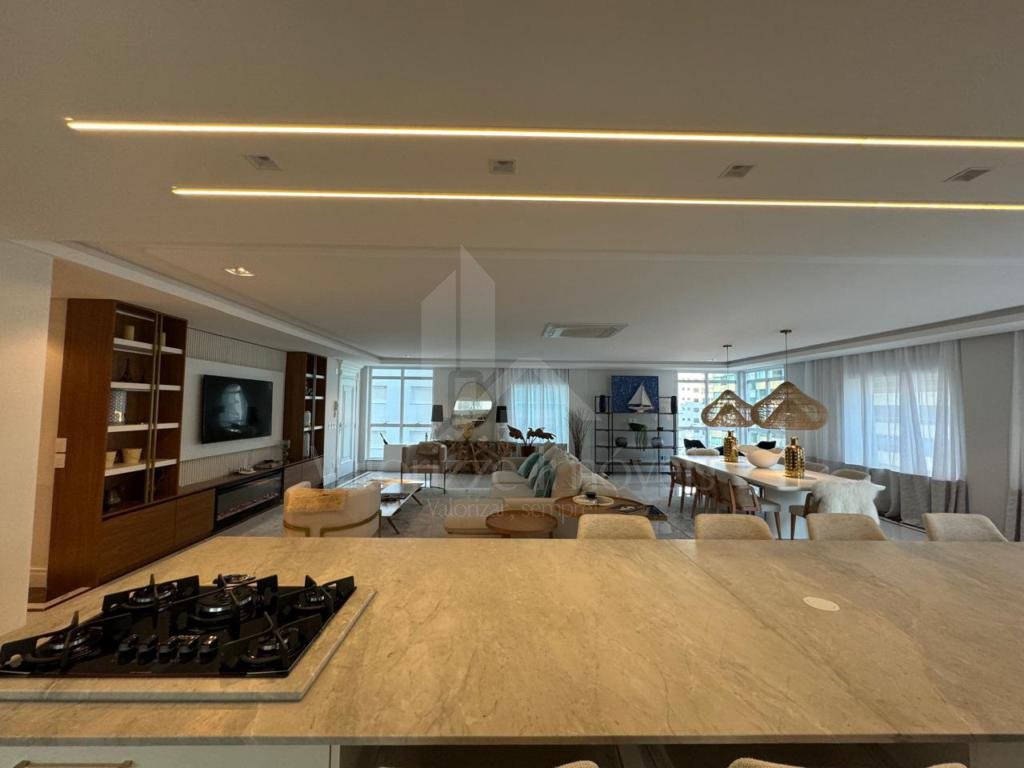 Apartamento composto por 4 suítes, com 331,19m², banho social, dois lavabos, living estar e jantar, cozinha americana com churrasqueira, área de serviço independente, finamente mobiliado e decorado, vista mar, todos os ambientes climatizados, persianas automatizadas, posição solar leste/sul e 4 vagas de garagem.