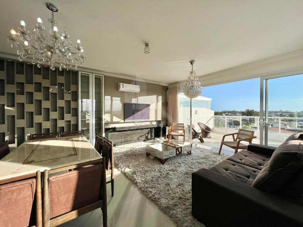 Lindo apartamento com vista eterna para o mar, mobiliado e decorado, teto rebaixado em gesso, piso porcelanato, climatizado, amplo living, churrasqueira, cozinha sob medida, área de serviço, amplos dormitórios, duas vagas de garagem, terraço, prédio alto padrão com salão de festas.