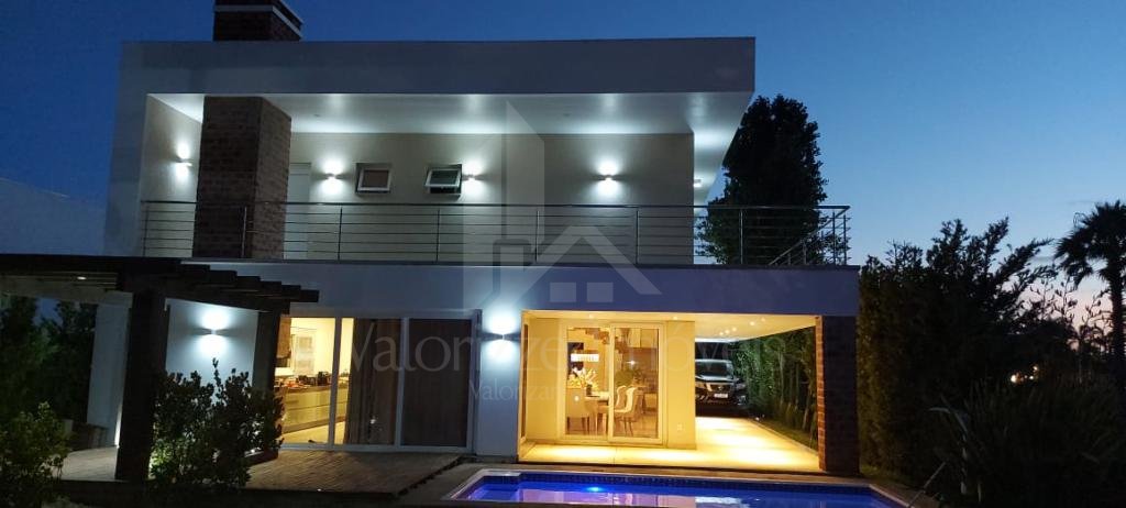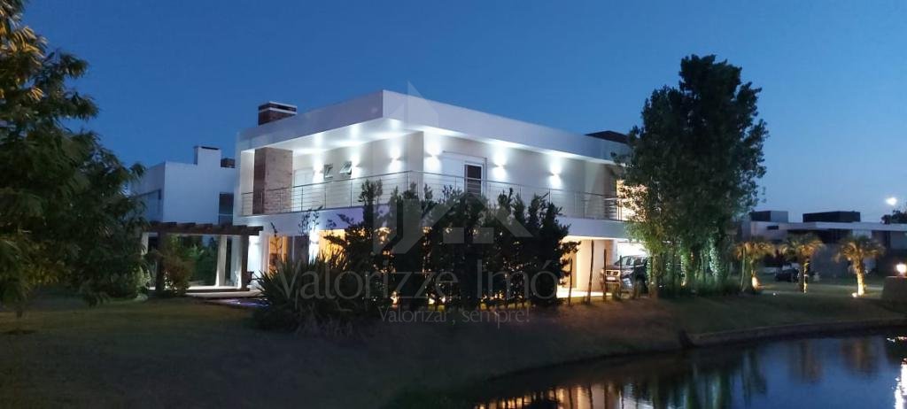 Lindo sobrado com 380m², beira de lago, 5 dormitórios sendo todos suítes, dependência de empregada, lavabo, amplo living com 3 ambientes, finamente mobiliada e decorado, piso em porcelanato, cozinha com espaço gourmet, churrasqueira, lareira, teto com rebaixe em gesso, área de serviço, piscina com cascata.