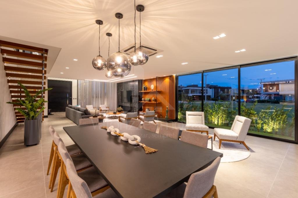 Composto por 06 dormitórios, sendo todos suítes (sendo uma master), banho social, lavabo, mobiliado e decorado, cozinha americana, living integrado, pé direito alto, piscina de concreto, área verde e excelente luz natural.