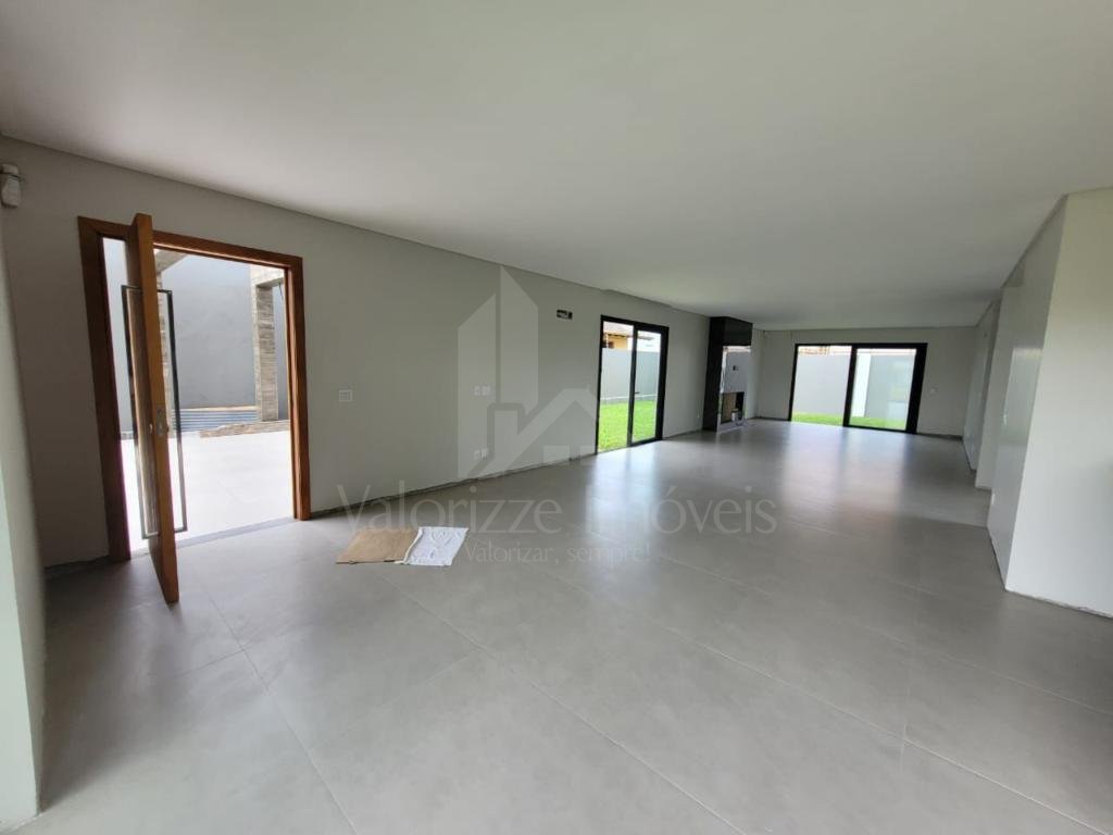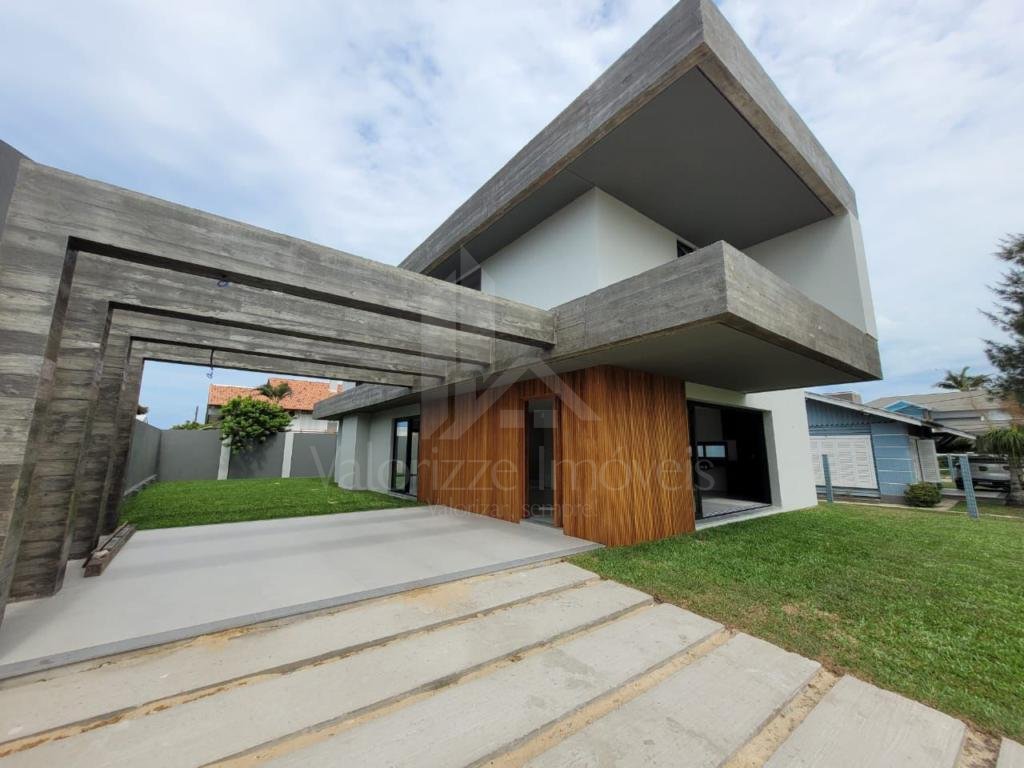 Sobrado novo de 4 suítes (sendo uma térrea), projeto arrojado, lavabo, lavanderia, cozinha americana c/churrasqueira, amplo living em 3 ambientes c/lareira, esquadrias em PVC preto automatizadas, são 262m2 de área total construída, terreno 18m de frente por 30m de fundos (540m2), entre centro e plataforma, quadra diferenciada em Atlântida.