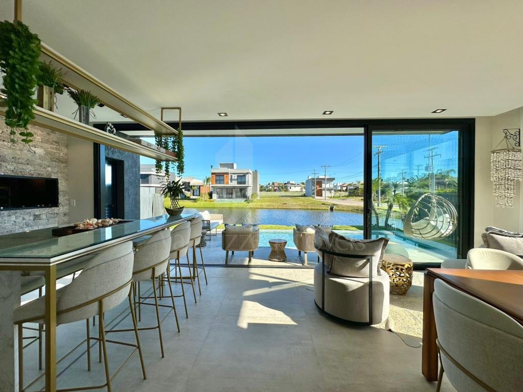 Belíssima casa em condomínio fechado com 243m², composta por 4 suítes, lavabo, living 02 ambientes, cozinhas estilo americana, lareira, mobiliada e decorada, com piscina de concreto,vaga para carros, beira lago, com jacuzzi e paisagismo. Sobrado próximo da Infraestrutura do condomínio. Agende sua visita!