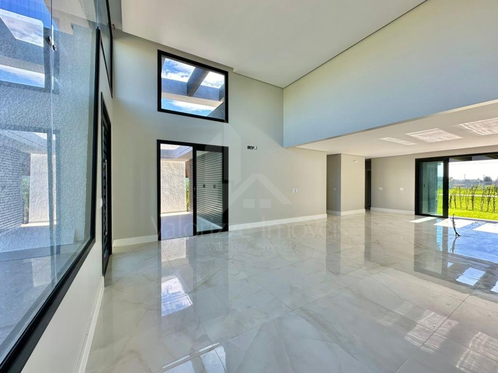 OFERTA: Residência térrea composta por 03 suítes, lavabo, living amplo e integrado, estar com lareira e pé direito duplo, cozinha no estilo americano com churrasqueira, abrigo para 02 carros, ótimo padrão de acabamentos, arquitetura contemporânea destacando-se dentro do condomínio, com ótima localização junto a infraestrutura. Ampla área de lazer composta por 02 piscinas, academia, 03 salões de festas, espaço kids, praças, pergolados, chimarródromos e lago para pesca. CONSULTE condições de investimento...