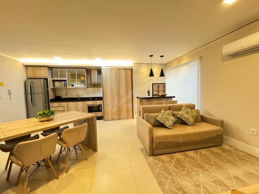 OFERTA NO BAIRRO NAVEGANTES - Localizado na rua Guaraci, a apenas 01 quadra da beira mar e junto a avenida Ubirajara, região mais nobre da cidade. Apartamento composto por 01 dormitório, banho social cozinha americana, espaço de serviços, sala de estar e jantar compondo um living completamente integrado, muito bem mobiliado, ótima posição solar e 01 vaga de garagem. Edifício de alto padrão construtivo, 100% revestido em plaquetas, medidores de água, luz e gás individualizados, portão e porteiro eletrônicos, hall de entrada decorado, 02 elevadores e zeladoria permanente. CONSULTE condições de investimento...