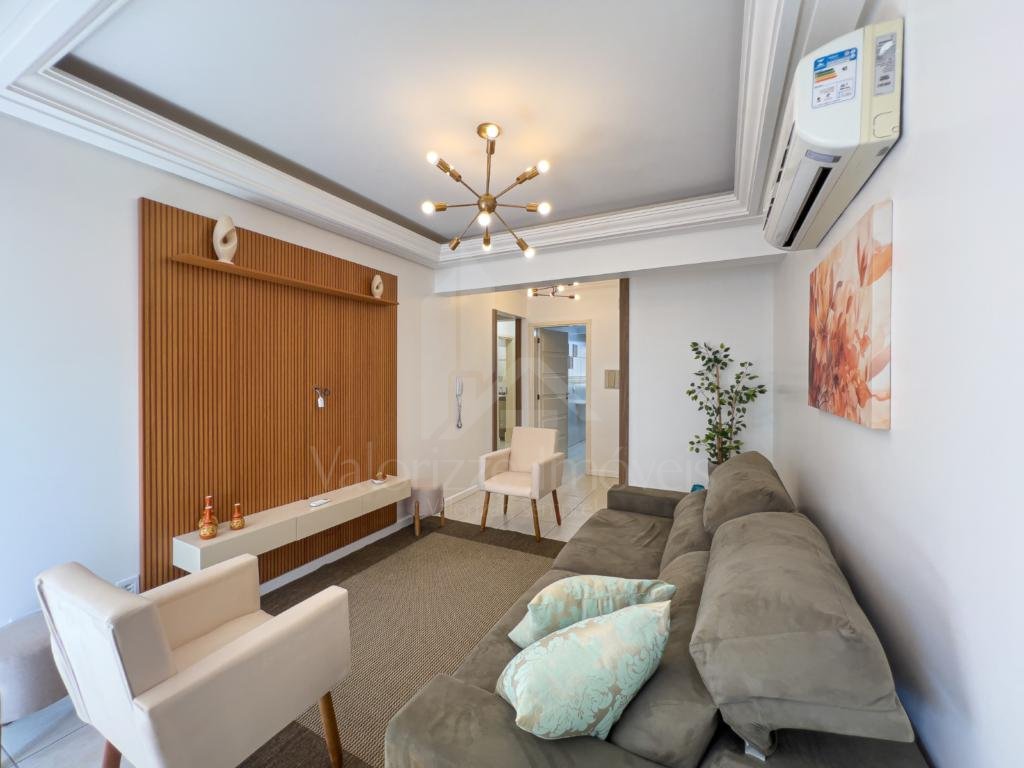 02 dormitórios (1 suíte), banho social, cozinha e área de serviços separadas, amplo estar e jantar integrados, sacada de frente com churrasqueira, andar alto.