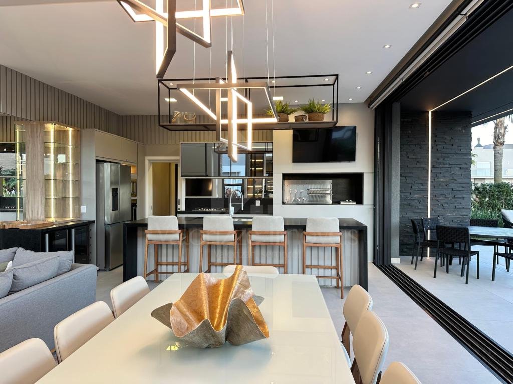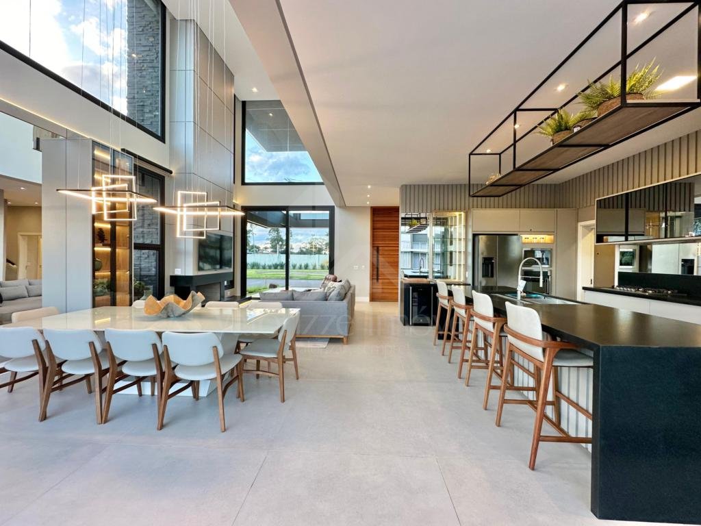 Linda mansão com 5 dormitórios sendo todos suítes, finamente mobiliado e decorado, fachada com arquitetura moderna, amplo living com 3 ambientes, churrasqueira, lareira, pé direito alto, beira lago, piscina com deck, paisagismo todo pronto, abrigo para 2 carros, área de serviço, agende uma visita com seu corretor..