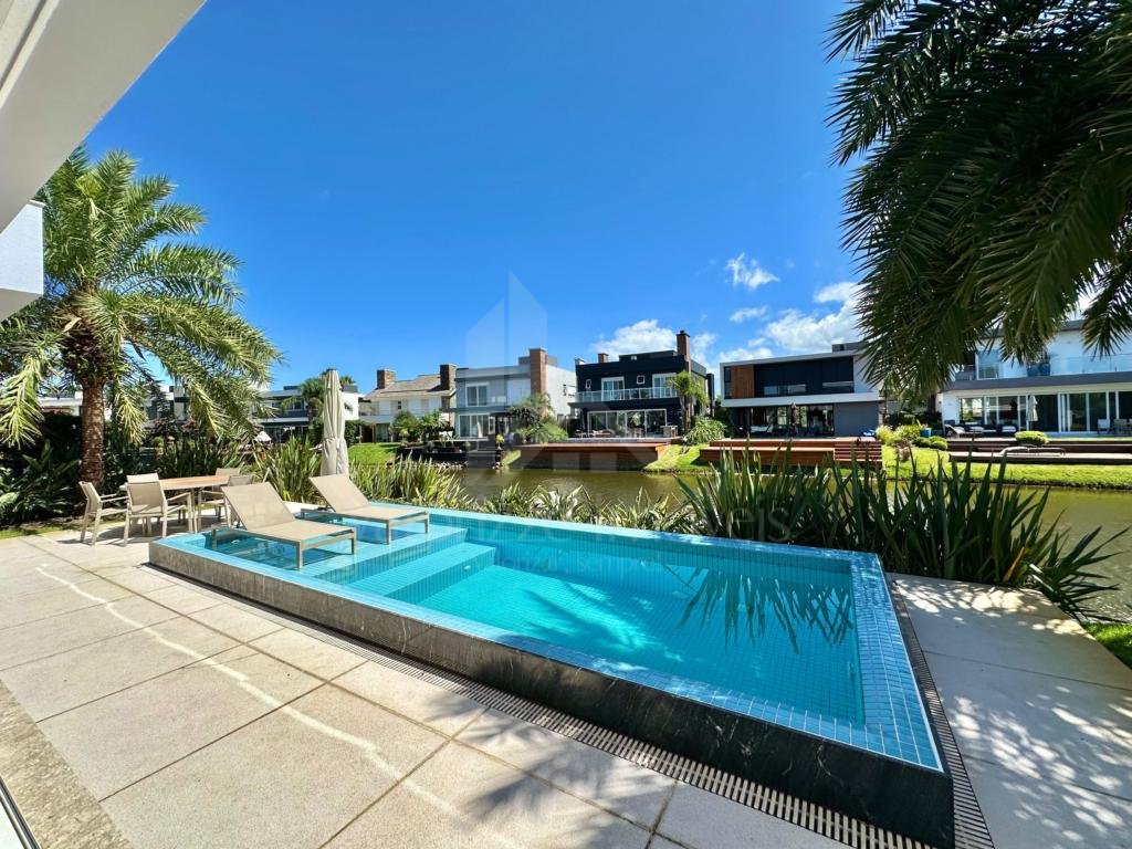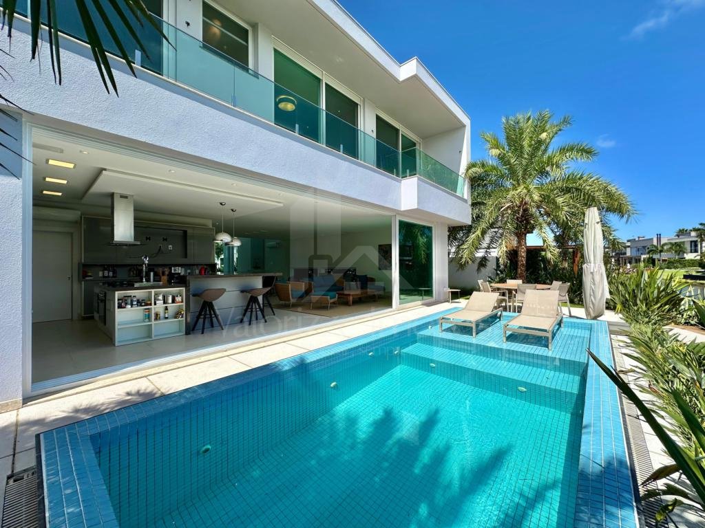 Magnífico sobrado a venda, composto por 05 suítes (sendo 01 térrea e outra master), lavabo, living completamente integrado, cozinha no estilo americano, escadaria conceitual, finamente mobiliada e decorada, integração com área esterna, piscina, jardinagem completa, à beira do lago do condomínio, deck, abrigo para 2 carros, fachada imponente e arrojada, com arquitetura contemporânea, materias nobres e altíssimo padrão de acabamentos. CONSULTE condições de investimento e agende uma visita para conhecer a casa e o belíssimo condomínio onde ela se localiza...