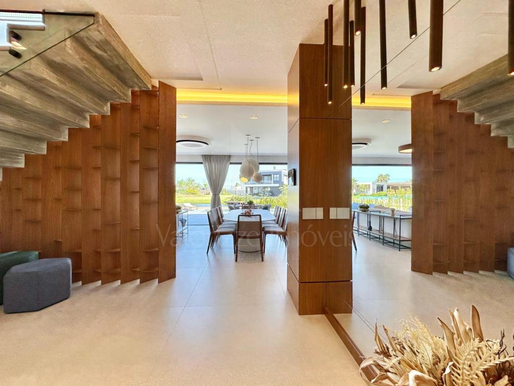 Composto por 5 suítes com sacadas, lavabo, living com 3 ambientes e elevador, espaço gourmet com churrasqueira automatizada e ilha, cozinha, dependência de empregada completa e área de serviço.