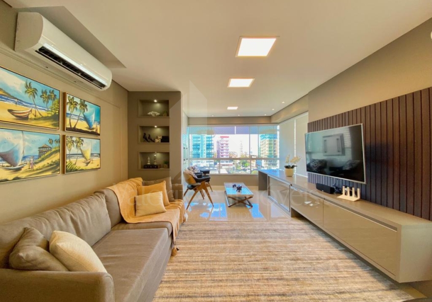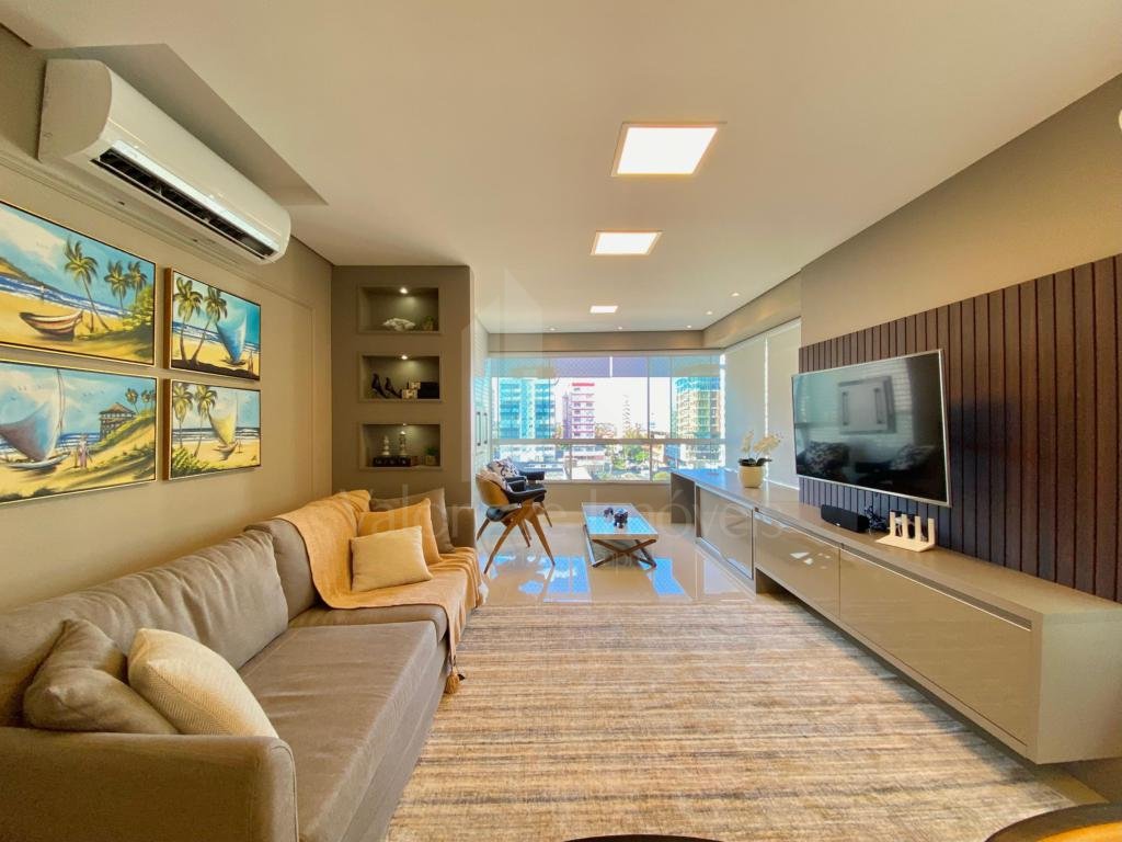 EXCELENTE OFERTA!!! 3 dormitórios com sacada integrada, 1 suíte, banheiro social, lavabo, finamente mobiliado e decorado, sacada integrada de frente, 2 posições solares, leste, norte, living 3 ambientes, cozinha planejada, área de serviço separada, churrasqueira revestida junto a janela, bancada americana, piso em porcelanato polido, rebaixado em gesso, split instalados, água quente, gás central, hidrômetros individuais, iluminação completa, luz natural excelente. Prédio 100% revestido em pastilhas, zeladora permanente, 2 elevadores, portão e porteiro eletrônico, hall mobiliado e decorado, infraestrutura completa, piscina, cinema, academia, salão de festas, área gourmet, espaço kids, em frente a linda para Surdos e mudos, próximo a praia e todos os recursos, agende uma visita com um de nossos corretores.