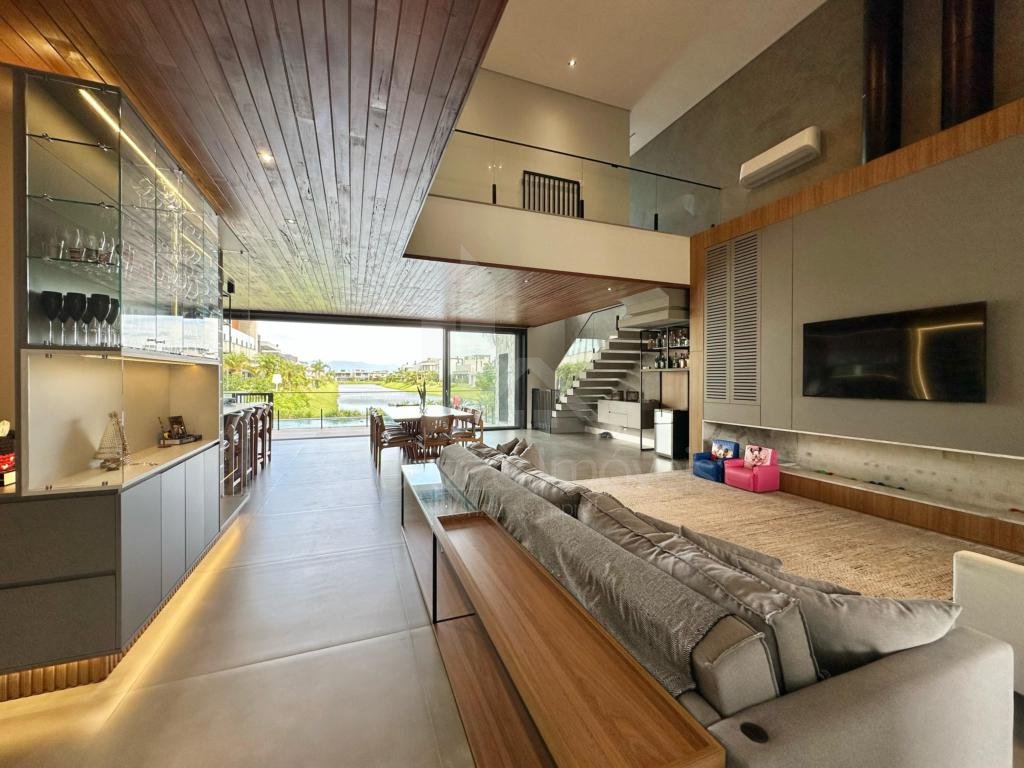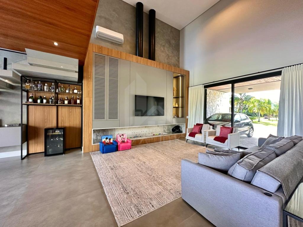 Magnífica casa em condomínio fechado, composta por 04 suítes (sendo uma master e outra térrea), living completamente integrado em 03 ambientes, cozinha no estilo americano com bancada e churrasqueira, lavabo, espaço de serviço, solarium e piscina na beira do lago, completamente mobiliada, decorada e equipada, paisagismo completo, abrigo para 02 carros, fachada comtenporânea com elementos em concreto aparente e iluminação em fitas de LED. Ótima localização dentro do condomínio, que contem infraestrutura completa como campos de futebol, quadras de tenis, salões de festa, piscinas frias e piscina térmica, lago para pesca, além de ter acesso a lagoa dos quadros com pier e local para jetski. CONSULTE condições de investimento...