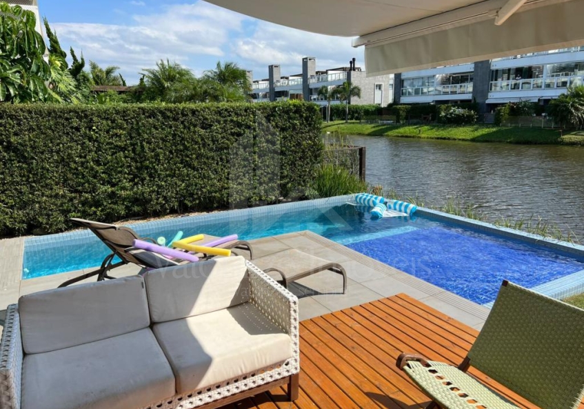 LINDÍSSIMO GIARDINO NO ROSSI - Composto por 03 dormitórios (sendo 01 suíte), banho social, lavabo, cozinha separada, área de serviços, ampla sala de estar e jantar, varanda com espaço gourmet, piscina em concreto, à beira do lago, completamente mobiliado e decorado, pronto para o uso, 02 vagas de garagem. Condomínio localizado em Atlântida, junto a avenida central, com estrutura de lazer completa e parador a beira mar. Venha conhecer esta belíssima oportunidade...