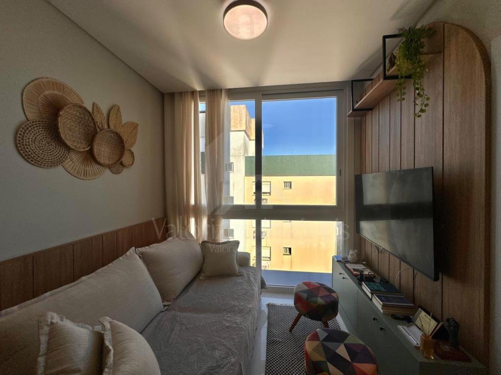 Amplo apartamento composto por 01 suíte + lavabo, living integrado, excelente metragem e boa distribuição, living integrado, área de serviços separada, completamente mobiliado e decorado, vista liberada, muito bem iluminado e ventilado, vaga de garagem. Edifício de alto padrão construtivo, com infraestrutura completa no rooftop, linda vista para o mar, com piscina e solarium, academia, salão de festas e espaço kids, espaço parrilla externo. Localizado no centro, em um dos poucos edifício novos da região, junto a todos os recursos. CONSULTE POSSIBILIDADE DE PRAZO DIRETO.