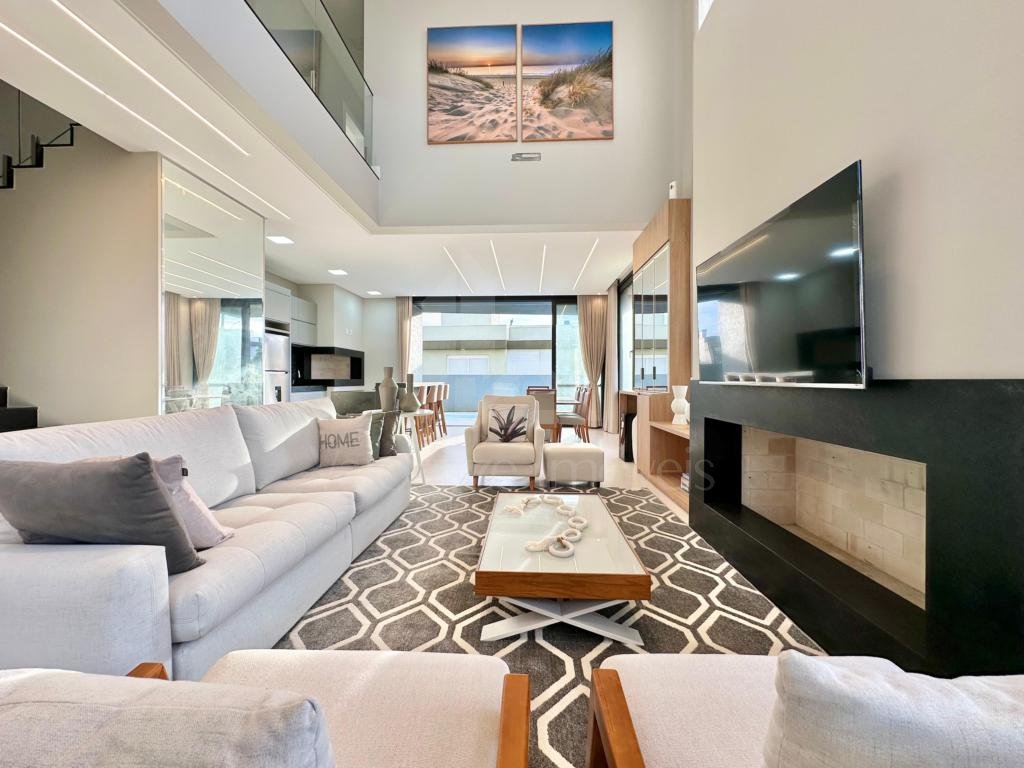 OPORTUNIDADE - Lindo sobrado composto por 04 suítes independentes, uma delas sendo master, com banheira e closet, lavabo, espaço de serviços, living completamente integrado e com 03 ambientes, sala de estar com pé direito duplo e lareira, cozinha em estilo americano e com churrasqueira, varanda, piscina com deck, abrigo para carro, completamente mobiliada, decorada e equipada, pronta para o uso, lote de esquina, arquitetura contemporânea e materiais nobres. Localizada em um belíssimo condomínio fechado, com infraestrutura de lazer completa e localização privilegiada no centro de Xangri-lá. CONSULTE possibilidades de investimento...