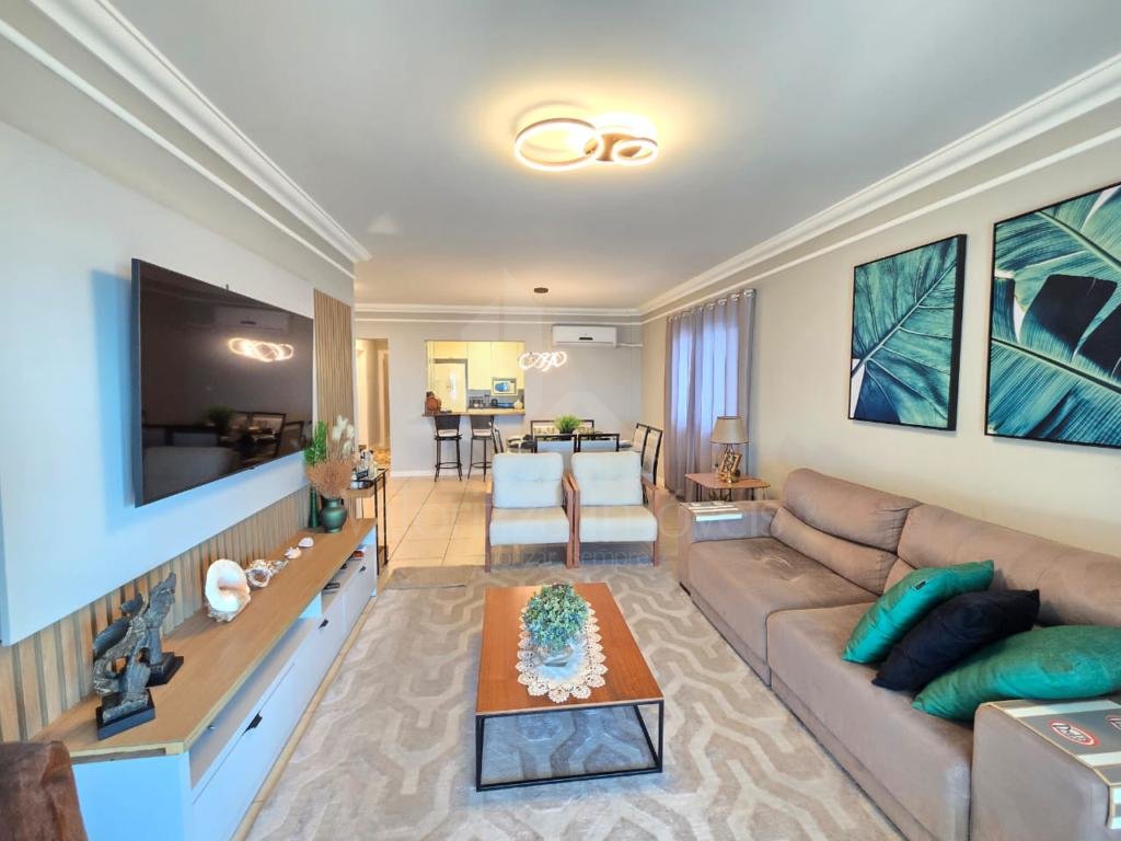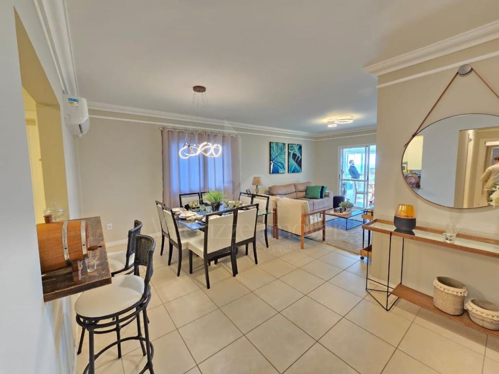 Amplo apartamento com mais de 180m², Vista panorâmica para o mar!!! Composto por 03 dormitórios, sendo 01 suíte, banheiro social, lavabo, mobiliado sob medida, cozinha americana, área de serviço separada, sacada com churrasqueira e 02 vagas de garagem + depósito.