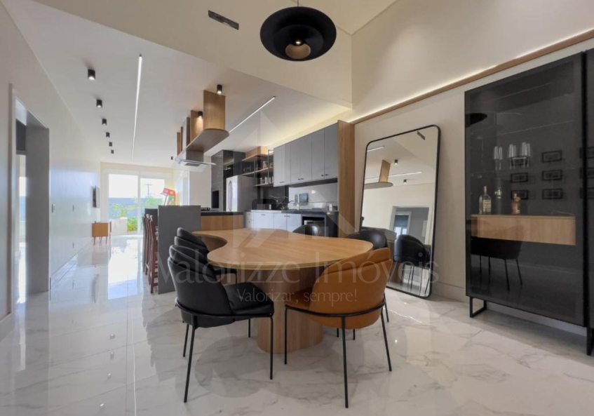 A cozinha gourmet é um convite à culinária, e o conforto é elevado com persianas automatizadas em toda a casa.