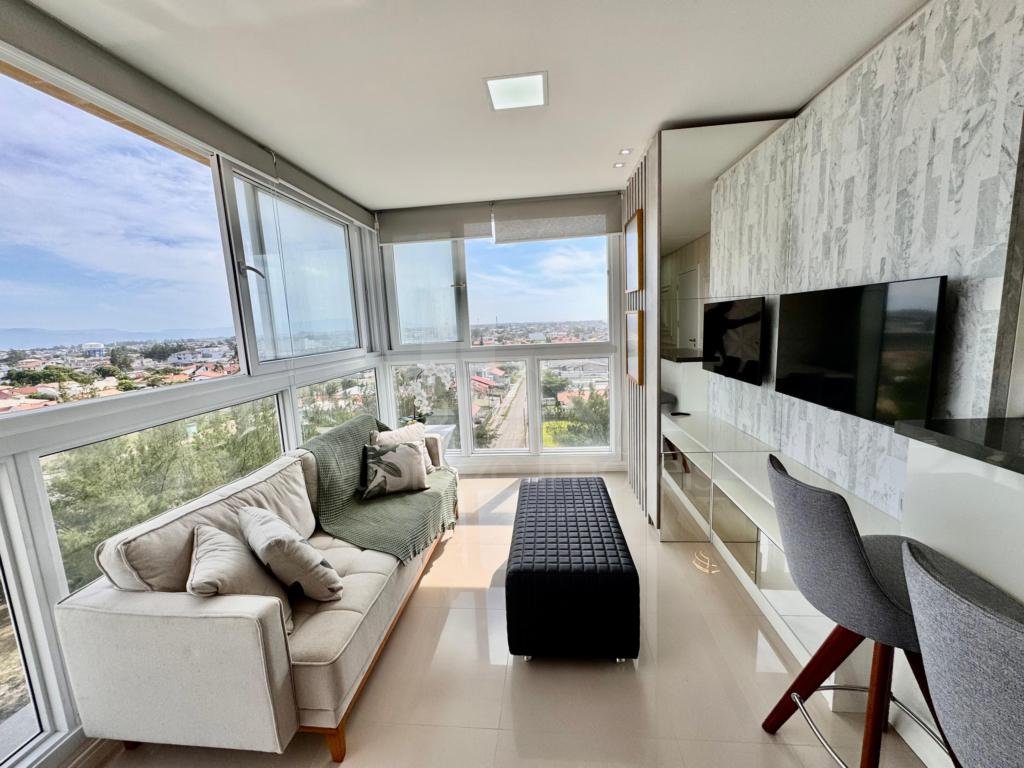 OPORTUNIDADE - 03 dormitórios com VISTA ETERNA PARA O MAR, finamente mobiliado e decorado, com living integrado, cozinha americana, espaço de serviços, churrasqueira, de esquina em ótima posição solar, andar alto e boa vaga de garagem. Edifício com excelente padrão de acabamentos, esquadrias em PVC, água quente e gás central, 100% revestido em plaquetas, hall decorado e zeladoria anual. Localizado no bairro Zona Nova, frente para avenida, junto a todos os recursos. CONSULTE condições de investimento...
