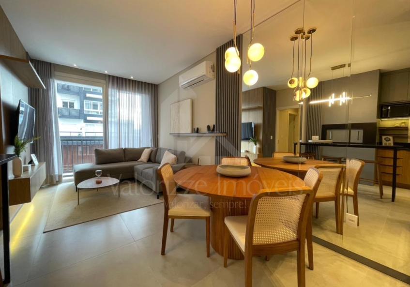 APENAS 30% NO ATO E SALDO EM 60X DIRETO - Apartamento finamente mobiliado e decorado, composto por 02 dormitórios (sendo 01 suíte), banho social, cozinha americana, área de serviços separada, living integrado, sacada de frente separada, vista liberada. Edifício em fase final de construção, com uma das melhores infraestruturas da cidade, tendo um belíssimo espaço kids e cinema no 3º andar e no rooftop com piscina térmica, piscina fria, salão de festas, loung wine, academia, espaço pet, fire place e vista 360º para toda a cidade. Agende sua visita.
