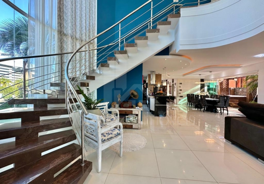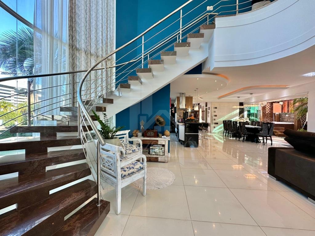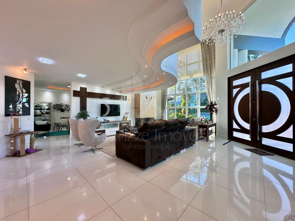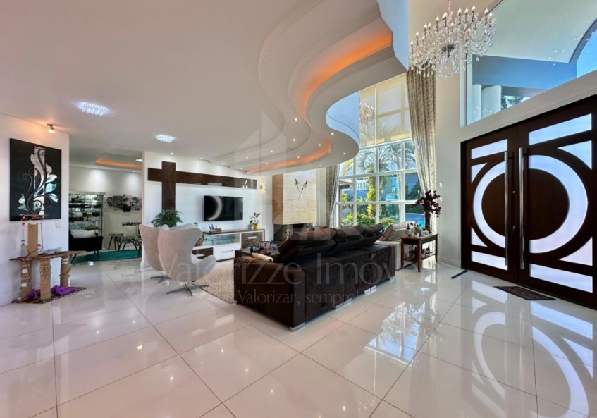Sobrado em condomínio fechado, composto por 04 dormitórios (sendo todos suítes), lavabo, living amplo e integrado, estar com lareira e pé direito elevado, cozinha com estilo americano e churrasqueira, área de serviços, varanda com pergolado, estar de leitura, pátio nos fundos com hidromassagem, completamente mobiliada e decorada, de esquina, com abrigo para 02 carros. Em ótima localização dentro do condomínio, junto a infra de esportes. Consulte condições de investimento...