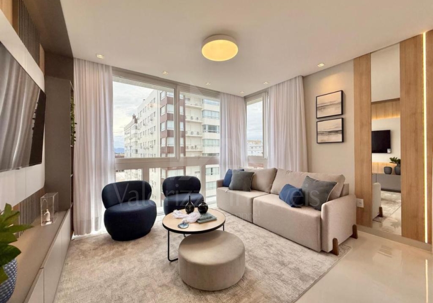 MAGNÍFICO apartamento composto por 03 dormitórios, sendo todos suítes, lavabo, living amplo e integrado, cozinha em estilo americano com churrasqueira, área de serviços separada, finamente mobiliado e decorado, com 02 vagas de garagem. Edifício novo, entregue em agosto de 2025 pelo Pugen Construtora, com infraestrutura de lazer no rooftop e em uma localização cobiçada do centro da cidade, junto a todos os recursos mas em uma rua calma e tranquila. CONSULTE POSSIBILIDADE DE 60X DE PRAZO DIRETO.