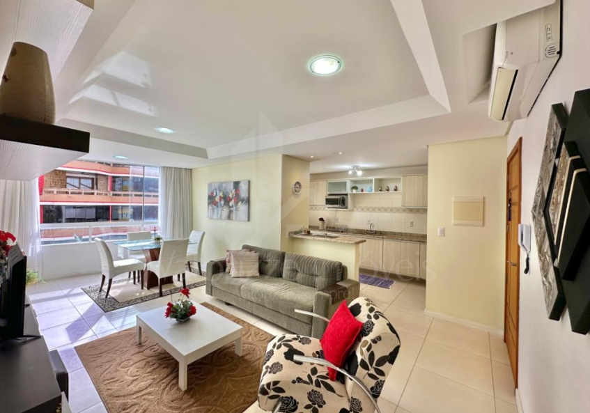 Apartamento com amplo espaço interno, muito bem distribuido, composto por 02 dormitórios (sendo 01 suíte), banho social, cozinha, área de serviços, sala de estar e jantar, sacada de frente, bem mobiliado, vaga de garagem. Localizado no centro da cidade, junto a todos os recursos, a apenas poucos metros do mar e da praça do Raul, Av. Flavio Boianoviski e tudo que se faz necessário ao seu bem estar. CONSULTE condições de investimento...