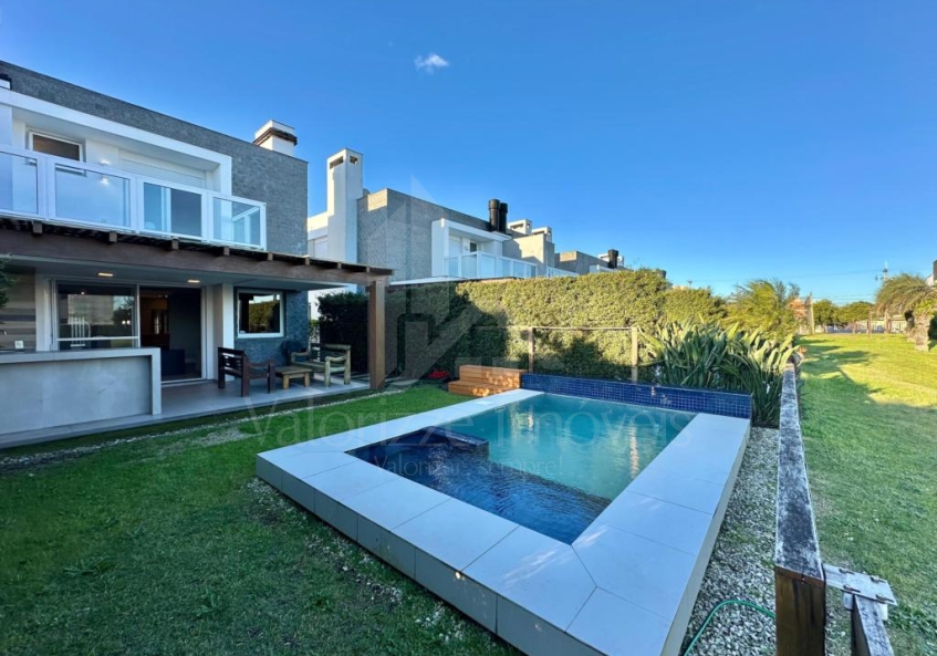 LINDÍSSIMO GIARDINO NO ROSSI - Composto por 04 dormitórios (sendo 01 suíte), banho social, lavabo, cozinha separada, área de serviços, ampla sala de estar e jantar, varanda com espaço gourmet, piscina em concreto, à beira do lago, completamente mobiliado e decorado, pronto para o uso, 02 vagas de garagem. Condomínio localizado em Atlântida, junto a avenida central, com estrutura de lazer completa e parador a beira mar. Venha conhecer esta belíssima oportunidade...
