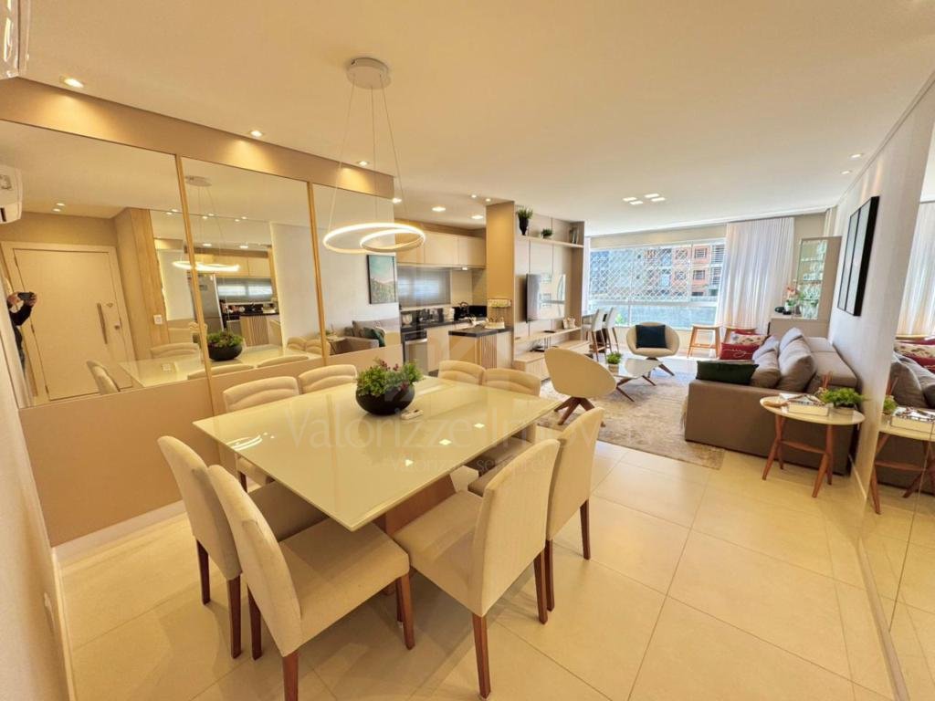 Somente há 2 quadras do mar, com 117m² distribuidos em 03 suítes, lavabo, sala de estar e jantar, sacada frente com churrasqueira, área de serviço, finamente mobiliado e decorado, todos os movéis sob medida, 02 vagas de garagem, água quente, gás central, todas peças bem iluminadas e ventiladas, 2 elevadores, hidrômetro individual de água, porteiro eletrônico, zeladoria permanente, tudo isso em uma obra padrão classe AAA.
