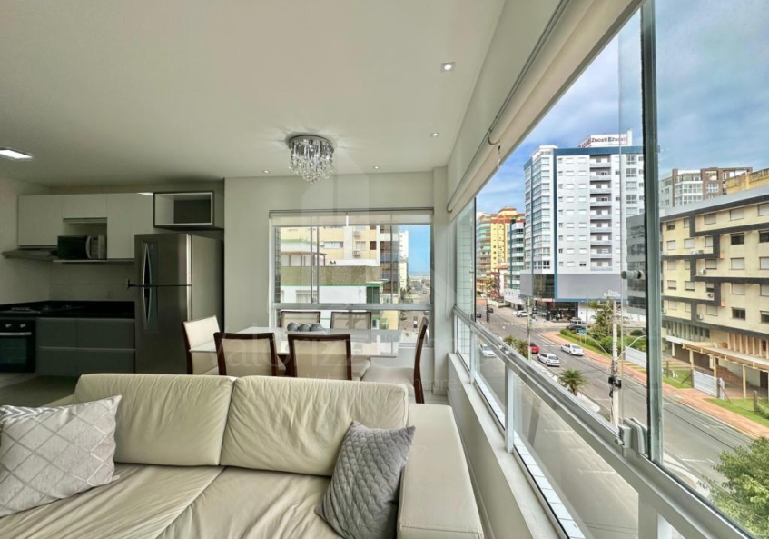 De esquina com avenida, vista panorâmica, mobiliado e decorado, composto de 03 dormitórios sendo um suíte, banho social, cozinha estilo americana, churrasqueira rotativa, área de serviço, sala de estar e jantar, sacada integrada com linda vista para o mar e lagoa!! 100% rebaixado em gesso, box. Prédio 100% revestido em plaquetas, 02 elevadores, salão de festas e hall decorados, zelador permanente.