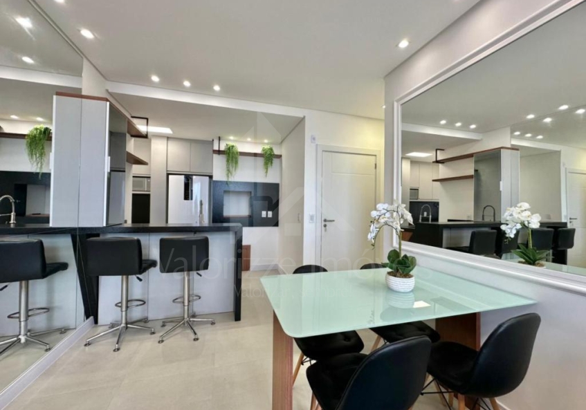 NOVO E NUNCA HABITADO - Apartamento composto por 02 dormitórios (sendo 01 suíte), banho social, cozinha americana, área de serviços, sala de estar e jantar integrados, andar alto, ótima posição solar, bem ventilado e muita iluminação natural, e uma excelente vaga de garagem. Edifício localizado no centro, junto a todos os recursos e com infraestrutura completa no 15º andar, com piscina, academia, solarium, salão de festas, espaço kids e muito mais.