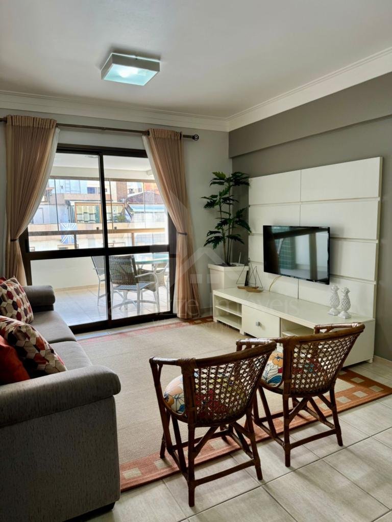 Apartamento composto por 2 dormitórios, suíte, banheiro social, todo mobiliado, sacada de frente separada com churrasqueira, living estar e jantar, ampla cozinha, área de serviço, box para carro, edifício localizado a 2 quadras do mar e meia quadra da praça.