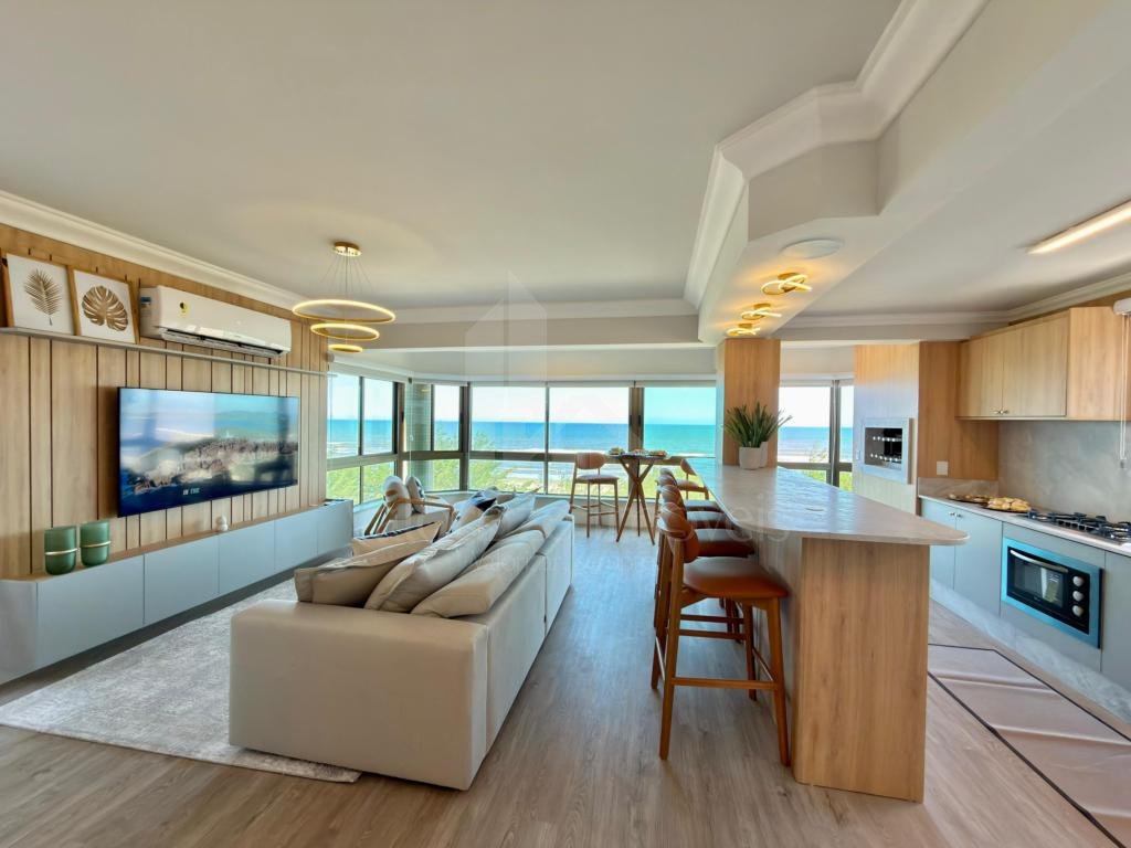 REQUINTE E EXCLUSIVIDADE A BEIRA MAR - Lindíssimo apartamento composto por 03 suítes individuais, lavabo, living amplo e integrado, cozinha em estilo americano com bancada, área de serviços separada, sacada de frente com churrasqueira também integrada ao living, completamente reformado, mobiliado, decorado e equipado, com vista para o mar eterna e cinematográfica, além de dispor de 03 vagas de garagem + depósito. Localizado no bairro mais nobre e na avenida mais valorizada da cidade, junto a todos os recursos, em edifício de apenas 01 apartamento por andar. AGENDE SUA VISITA!